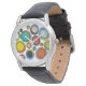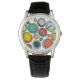 This watch has a mid-century modern design of groups of three ovals in retro colours scattered across the design.
