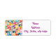 These return address labels have a mid-century modern design of rectangles with a white hole in retro colours.