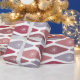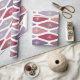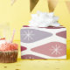 This wrapping paper has a mid-century modern design of flattened diamonds in retro shades of purple and pink.