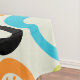 A pattern of colourful shapes that resemble rocks make up this 1950s atomic age-inspired abstract art design. Colours are chartreuse, orange, sky blue and black.