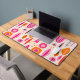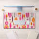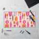 Pink and orange retro desk mat with abstract pattern. If you are into mid century modern aesthetic and colourful creations this design is certain to make you happy!