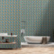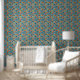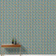 Set against a rich blue background, the palette includes burnt orange, teal, mustard yellow, charcoal gray, and soft ivory accents. The cool blue base adds depth and contrast, making this wallpaper ideal for statement accent walls, living rooms, dining spaces, home offices, or retro-inspired interiors. This design blends iconic mid-century style with vibrant color and timeless appeal. Search ID1224 to see other designs in this series. Note: design adapted from generative content.
