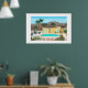 An original digital illustration by Noël Snow. Featuring a charming illustration of a yellow mid-century modern house complete with tiki garden decor, this print showcases clean lines, bold geometric shapes, and vibrant colours that epitomise the iconic mid-century aesthetic. Perfect for adding a touch of vintage sophistication and Palm Springs desert flair to any room, this high-quality art print brings a piece of classic style into your home.