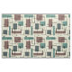 A unique atomic era styled 1950s pop art style pattern with lines and desaturated brown and green squares & rectangles on a yellow background.