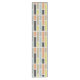 A mid century modern abstract art pattern with long vertical rectangles in multiple colours of light turquoise green, gold, beige or tan, yellow, orange, and black.