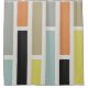 A mid century modern abstract art pattern with long vertical rectangles in multiple colours of light turquoise green, gold, beige or tan, yellow, orange, and black.