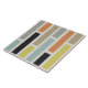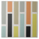 A mid century modern abstract art pattern with long vertical rectangles in multiple colours of light turquoise green, gold, beige or tan, yellow, orange, and black.