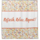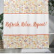 In the centre of the curtain, the words "Refresh, Relax, Repeat!" are printed in large, flowing cursive font, adding a touch of elegance and positivity to your space. The text is beautifully centred within the off-white section, making it a focal point that encourages a soothing and rejuvenating shower experience.