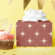 Mid century modern wrapping paper features atomic star pattern in retro terracotta brown. The cute starburst is a cool midcentury classic.