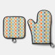 Mid-Century Modern Retro Geometric Circles Pattern Oven Mitt & Pot Holder Set
