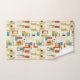 Fun Mid Century Modern pattern for your retro style bath. Pretty ivory background with black, orange, and turquoise, geometric, squares and rectangles.