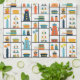 Sleek, minimalist, graphic mid century modern retro kitchen shelves, with cups, coffee pot, coffee & tea canisters, baking dishes, pans, and cupcakes. Let me know if you’d like a different scale for the pattern. I’d love to see my design out in the world - tag me on IG @parry_vegan.
