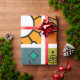 This wrapping paper has a mid-century modern design of a smorgasbord of mid-century modern graphics in retro colours.