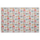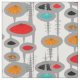 Funky space age ovals fabric with triangles. Colors of bright orange, red, teal and black on a white background. Mid-century inspired fabric design. All graphics by Gail Gabel, LLC.