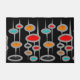 Mid-Century modern spaceage doormat in colours of the time period on a black background.