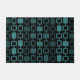 A simple minimalist pattern inspired by 1950s atomic era abstract art, with columns of rounded squares in dark teal, with a black background.