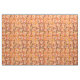 Modern abstract design of squared spirals in light coral pink with earth-tone neutrals and accents of orange and gold