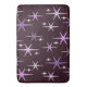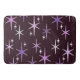 This design was inspired by vintage mid century modern art. It has a pattern of stars in shades of pink and purple on a dark background.