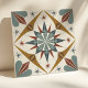 Bring retro style to your space with this mid-century modern tile featuring a bold starburst design in teal, mustard, and rust red. The intricate geometric shapes and vintage-inspired aesthetic make it perfect for backsplashes, accent walls, or adding a pop of nostalgic charm to your interior décor.