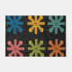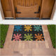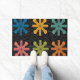 This doormat has a Mid-century modern design of starbursts in retro colours on a field of black.
