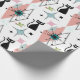 Mid Century Modern Stars and Cats Pattern White Wrapping Paper