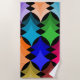 This beach towel has a mid-century modern design of retro stars in shades of red, orange, yellow, green, blue, and purple.