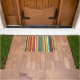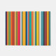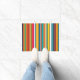 This doormat has a design of vertical stripes in Mid-Century Modern colours.