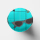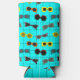 This seltzer can cooler has a mid-century modern design of retro sunglasses on a field of blue with a grid.