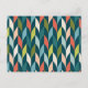 This mid-century modern pattern features a teal and coral herringbone design.