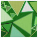 Mid-Century Modern geometric mosaic of outlined triangles in shades of emerald and jade green, aqua and beige, on an emerald green background fabric