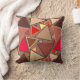 Mid-Century Modern geometric mosaic of outlined triangles in light taupe, camel, chocolate brown, and coral red on a deep taupe tan background throw pillow