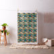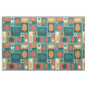 This retro inspired abstract pattern has a turquoise background and various sizes of rectangles in yellow and orange.