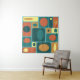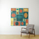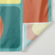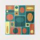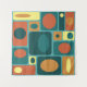 This retro inspired abstract pattern has a turquoise background and various sizes of rectangles in yellow and orange.