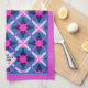 A symmetrical pattern showcases bold, vibrant colours including magenta, pink, blue, and aubergine, all balanced by crisp white accents. The abstract geometric shapes and the overall aesthetic capture the essence of mid-century modern design, offering a stylish and retro-chic look. This design is perfect for adding a pop of colour and a touch of nostalgia to any space and a perfect gift for newlyweds, or as a housewarming gift for the couple who love vibrant colours. There are more matching towels in my shop so you can mix and match a few to give as a set.