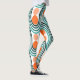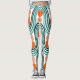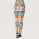 These leggings have a mid-century modern design of teal waves and orange circles.