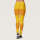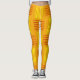 These leggings have a mid-century modern design that looks like a weave with red and yellow lines on a field of gold.
