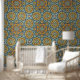 Mid century Moroccan blue yellow peel and stick Wallpaper