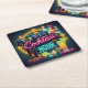 Mid Century Neon Sign Cocktail Hour Couple Square Paper Coaster