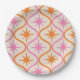 Mid Century Orange Pink Starbursts on Ogee Pattern Paper Plate