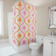Mid Century Orange Pink Starbursts on Ogee Pattern Shower Curtain