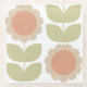 This seamless retro floral pattern features soft pastel pink groovy flowers paired with muted green leaves, inspired by classic mid-century modern and 70s vintage design. The repeating layout creates a balanced, calming visual rhythm, making it ideal for large-scale applications without visible breaks.