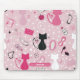 Mid Century Pink Heart Cats Mouse Mat