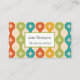 This is custom bussiness card featuring elegant mid century modern atomic starbursts pattern placed on ogee ovals in red, green, mustard and teal.