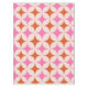 This is mid century modern atomic stars in pink and orange pattern on white background. It's great looking tablecloth for anyone who love retro geometric designs