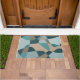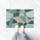 This midcentury art inspired pattern shows rock-like shapes in layers, creating shades of teal, blue-green and gold.