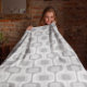 Mid-Century Rounded Rectangle Grey and White Fleece Blanket