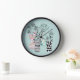 The size of the clock is dramatic and the abstract alcohol ink design is soothing and intricate at the same time. I chose the black frame that adds pop to the blue and gold design. The gold printing would be better in a slightly darker or larger font. I love it and I’m looking for just the right place in ny new apartment. I would recommend this clock for a personal gift or a present. I feel that the quality is excellent for the money! I’m a bit of a clock nut so I’m pretty particular about my purchases. The clock is larger in diameter than many if the clocks I have, so it stands out very well. I think a slightly darker printing color and a moderately larger size would best suit a professional decor or add more impact in a work place item.
