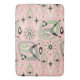 My original vector illustration of mid century style abstract Siamese cats, cubes, starbursts, boomerangs, lozenges, and more, in green, mocha, dark brown, black and off white on a textured pink background.