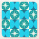This is elegant mid century atomic starbursts pattern on teal circles and blue half circles on squares .It's great looking coaster for anyone who love retro geometric designs