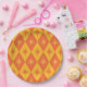 Mid Century Starbursts on Orange Amber Diamonds Paper Plate